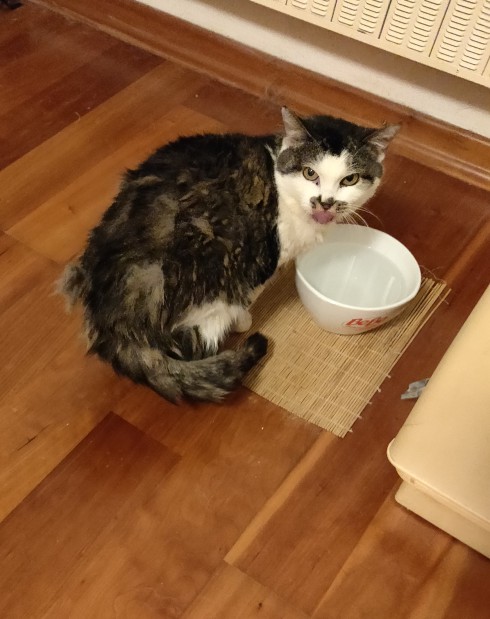 Jak vím že smrdí, když se vidíme jen zřídkakdy a spíše na dálku? Je to zvláštní, ale poté, co jsme nebyli 14 dní doma a staraly se o ni děti, tak vyhledává moji společnost. Tedy, nepředstavujte si to moc bujně. Večer, už potmě, kdy já dozpívám a ona dovečeří, popřeju jí dobrou noc, zhasnu a ulehnu. Paní C. si vyřídí toaletu a pak někde pod stolem, a šicím strojem, na židli apod. se začne umývat. Pak se brzy začne zachvívat matrace a přibližovat chrochtání. A světe div se, včera se uložila necelý metr od mě vedle mého polštáře. Intenzívně se čistí, intenzívně chrochtá a lehce smrdí. Ne že by mi to vadilo, i když… Ale není to nějaký zdravotní problém? Nemá špatné zuby? Nemá nějakou interní chorobu? Nemyslím, že je u veterinářky postačující říct, že moje kočka lehce zavání. Hlavně by převoz byl trauma pro ni, ještě větší pro nás a paní doktorka se taky nechce nechat zabít. Takže toto budu dále monitorovat.